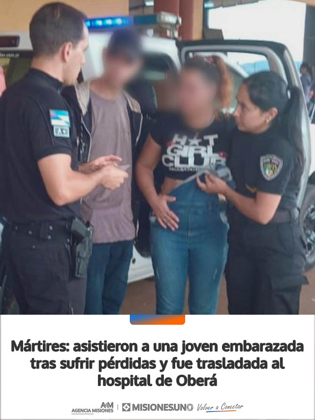 Efectivos de la Policía de Misiones asistieron a una joven de 18 años que cursa un embarazo de 15 semanas y que, durante la mañana de este jueves, sufrió pérdidas mientras se encontraba en la localidad de Mártires.